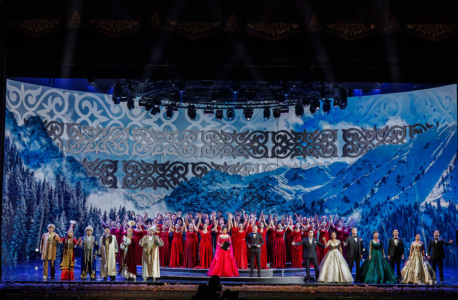 В программе вечера были представлены казахские народные песни и фрагменты из национальных опер в исполнении солистов и хора театра. Особое место в программе заняло предфинальное произведение — китайская кантата «Хуанхэ өзені туралы кантата» композитора Си Син Хай, ставшая символом культурного диалога и дружбы между Казахстаном и Китаем.