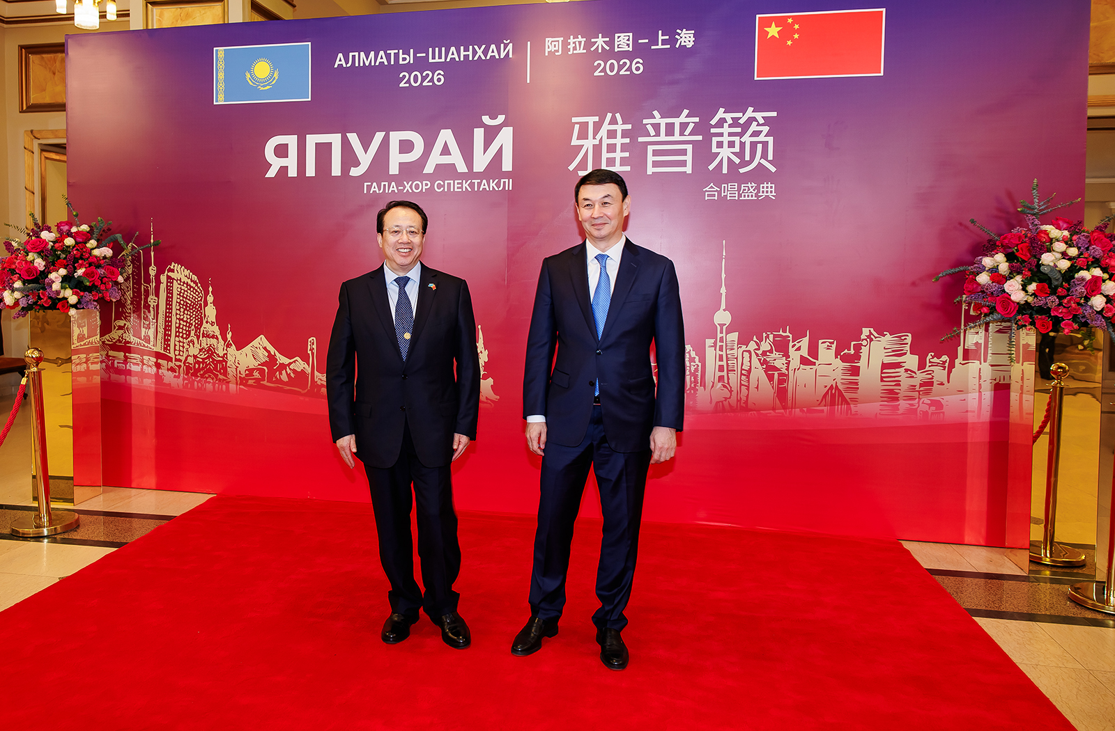 7 апреля в Казахском национальном театре оперы и балета имени Абая состоялся гала-спектакль «Япурай», организованный Акиматом города Алматы во главе с Акимом города Сатыбалды Дарханом Амангельдиевичем в честь визита официальной делегации из Шанхая — крупнейшего мегаполиса КНР во главе с мэром города Гун Чжэн, впервые посетившим Алматы с официальным визитом.